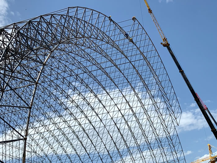 (2)网架加工前应对现场尺寸进行复测,确认无误后方可进行加工、安装;网架制作、运输、安装应遵守《空间网格结构技术规程》JGJ7-2010、《钢网架徐州螺栓球节点》JG/T 10-2009、《钢网架徐州螺栓球节点用高强度螺栓》 GB/T 16939-2016、《徐州钢结构徐州工程徐州施工规范》 GB50755-2012、《徐州钢结构徐州工程施工质量验收标准》 GB50205-2020。
